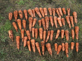 この畑、こんな人参が取れています。 これで約10kg この後、箱詰めして発送しました。 ジュースにして飲まれる方の 体は、きっと喜んでいることでしょう。2010年12月中に収穫を終了しました。 皆様お買い上げ有難う御座いました。玉利畑と遊休1畑にバトンタッチです。